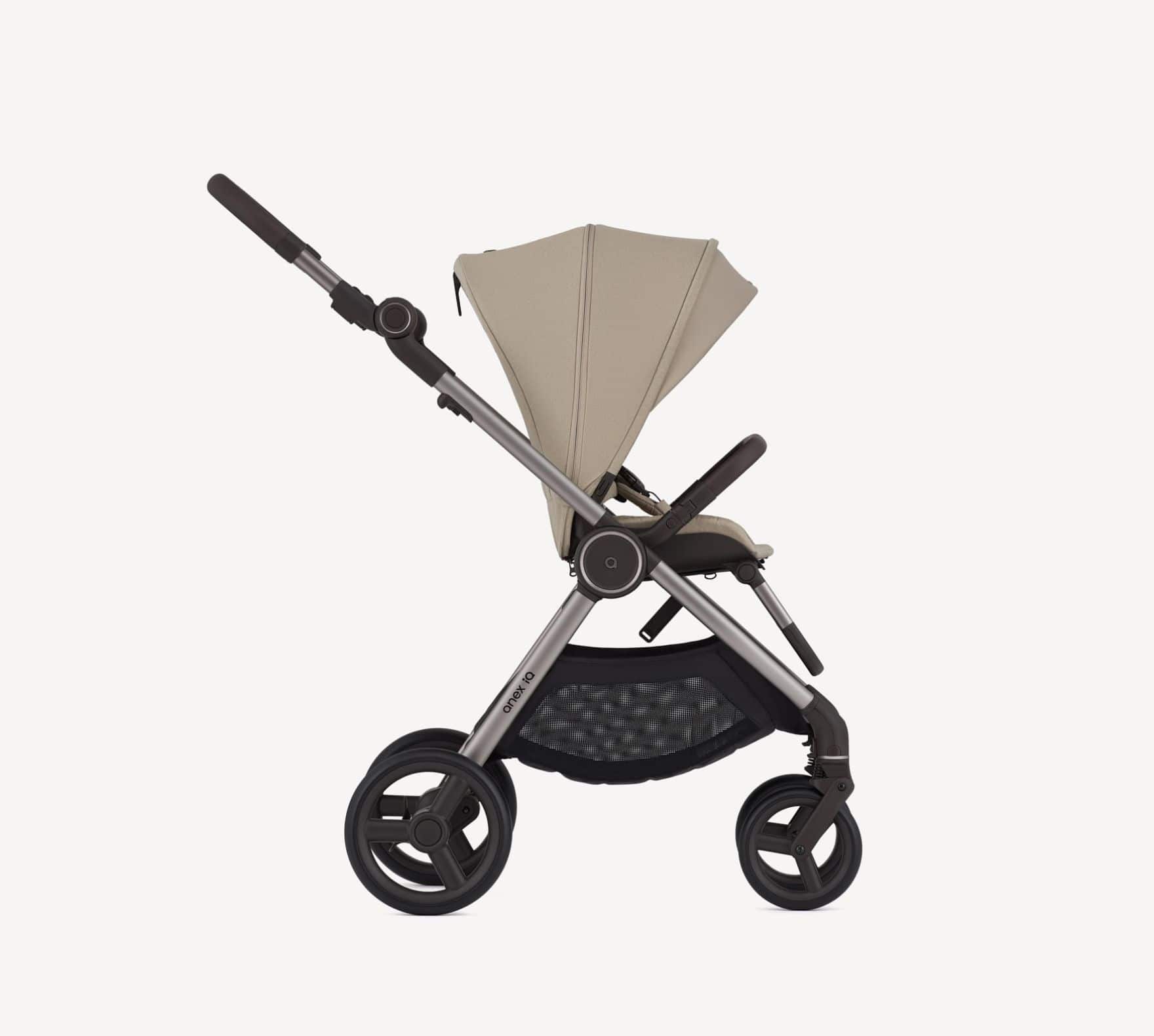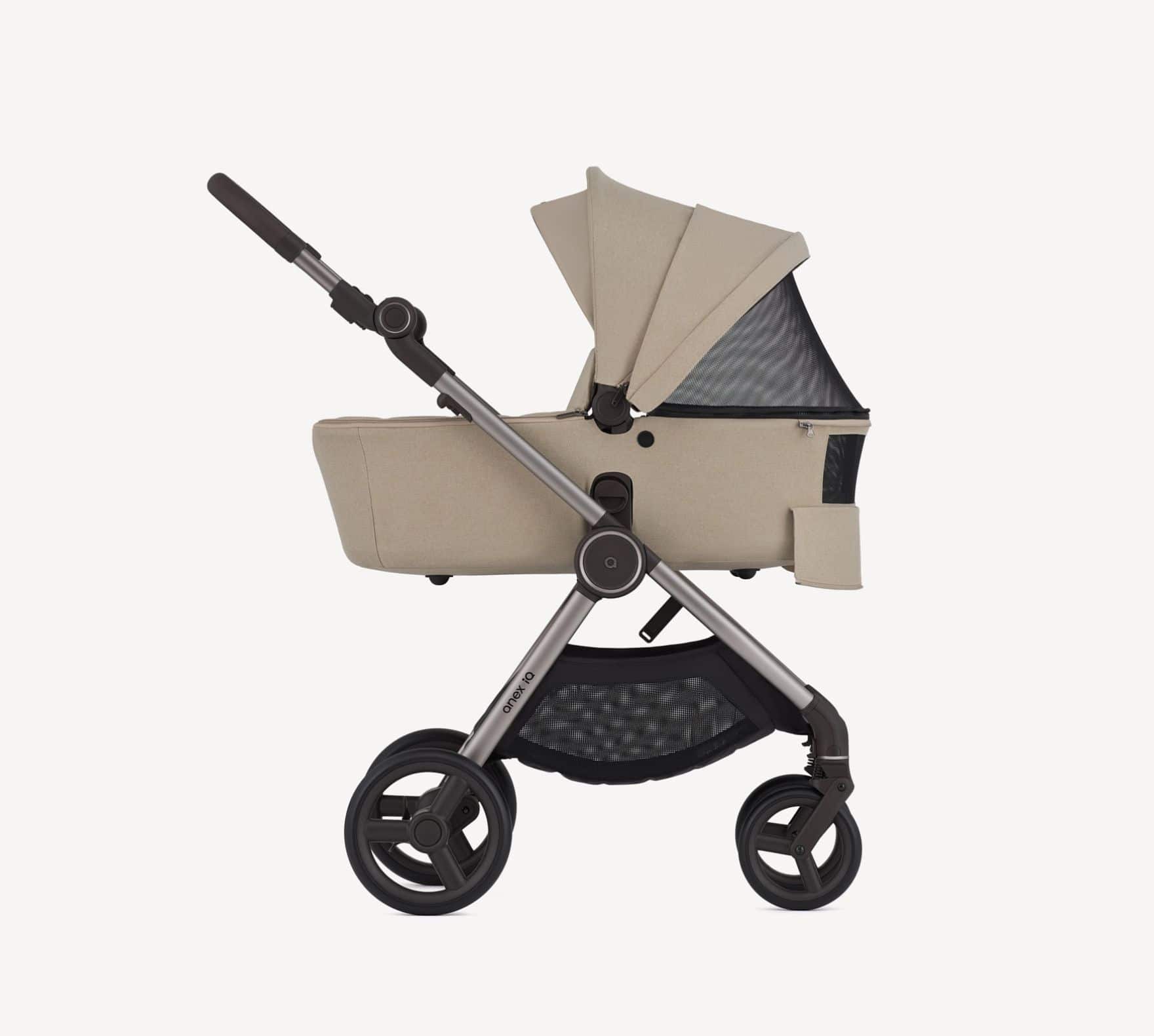 O Anex Carrinho de Bebé IQ Premium é uma solução completa e prática para famílias que procuram um único sistema de passeio que cresce com a criança, desde o nascimento até cerca dos 4 anos ou até 22 kg.