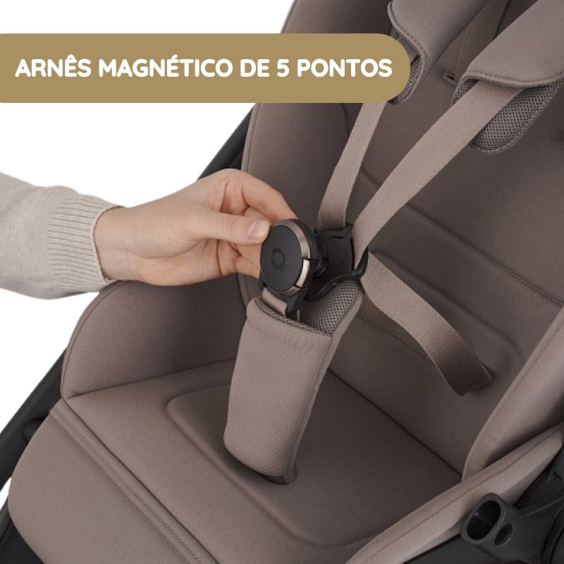 - Sistema de segurança: arnês de 5 pontos com fecho magnético