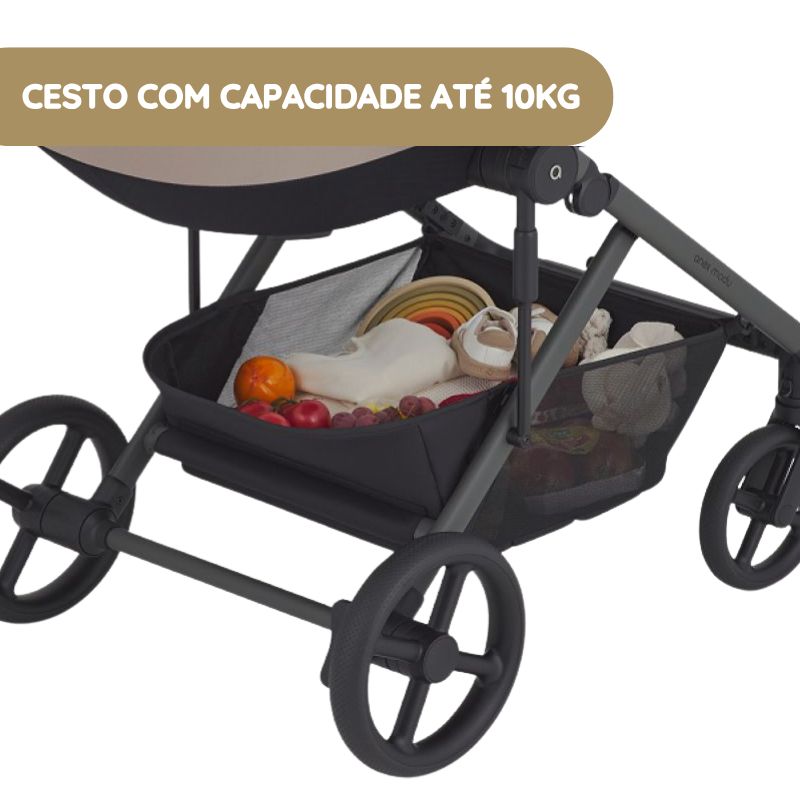 Ideal para transportar compras, mala do bebé e todos os essenciais do dia a dia, sem comprometer a estabilidade do carrinho. - Fecho compacto em todas as configurações