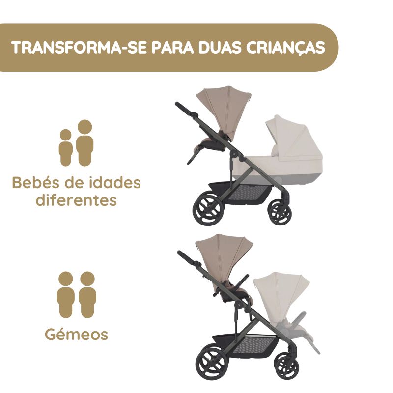 ✅ Sistema modular evolutivo que cresce com a tua família e evita a compra de vários carrinhos
