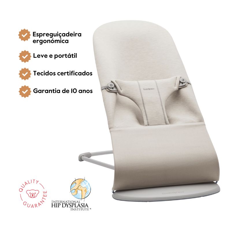 A Espreguiçadeira Bliss é uma espreguiçadeira leve e prática para bebés com um assento de tecido macio. É um “baloiço” ergonómico para bebés, onde o seu bebé pode brincar ou descansar perto de si, enquanto toma banho, prepara uma refeição ou faz outras tarefas domésticas.