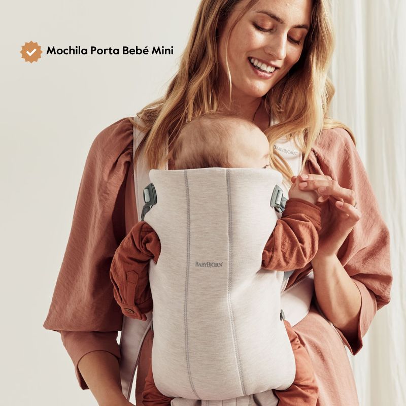 A Mochila BabyBjorn Mini é pequena, macia e simples de usar. É projetada para atender à grande necessidade de proximidade de um bebé muito pequeno com os seu pais.