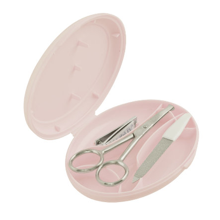 A tesoura de bebé especial em aço inoxidável é duradoura e extra segura devido às extremidades arredondadas especiais. A lixa de unhas do bebé é suave e lixa as unhas do beb com suavidade. Estes produtos de higiene são essenciais para a necessidade do dia-a-dia. Este Bebejou Kit de Manicure é muito conveniente de usar, mas também tem um tamanho prático para colocar na sua mala.