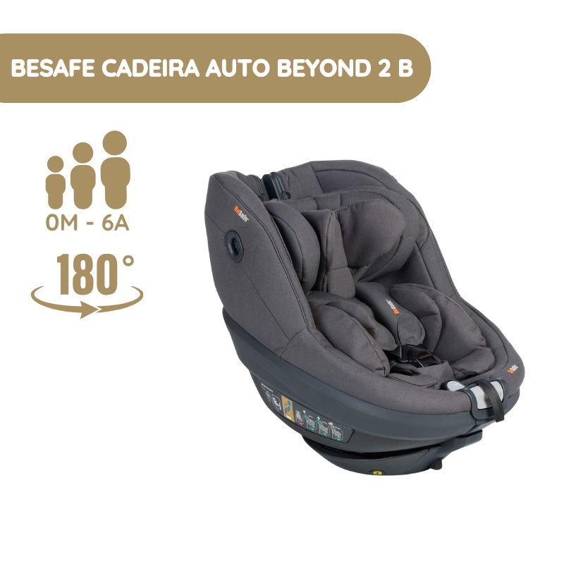 BeSafe Cadeira auto Beyond 2 B: aprovada pelo Plus Test Suíço, segurança i-Size, viaja exclusivamente contra a marcha até aos 6 anos, reclinação ajustável, instalação ISOFIX e proteção lateral SIP+. Conforto e segurança para viagens com o seu filho desde o nascimento.