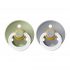 Pacote de 2 chupetas que brilham no escuro com desenho exclusivo e original criado e fabricado na Dinamarca pela BIBS. As chupetas são feitas de PP, livres de BPA, ftalatos e PVC. Cumprem a norma EN1400 e são regularmente testadas na Dinamarca pelo Consumer Lab Denmark.
