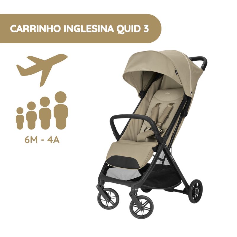 O melhor aliado para passeios e viagens! O Inglesina Quid 3 é o carrinho de bebé ultra leve, compacto e confortável, perfeito para a rotina na cidade e aventuras à volta do mundo.