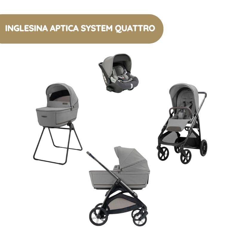 O Inglesina Aptica System Quattro da Inglesina é a solução perfeita para pais que procuram um sistema de transporte completo, uma vez que inclui tudo o que precisa para transportar o seu bebé desde o primeiro dia. Com um design inconfundível e com atenção aos detalhes, este sistema oferece o máximo conforto para o seu bebé e uma utilização extremamente fácil para os pais.