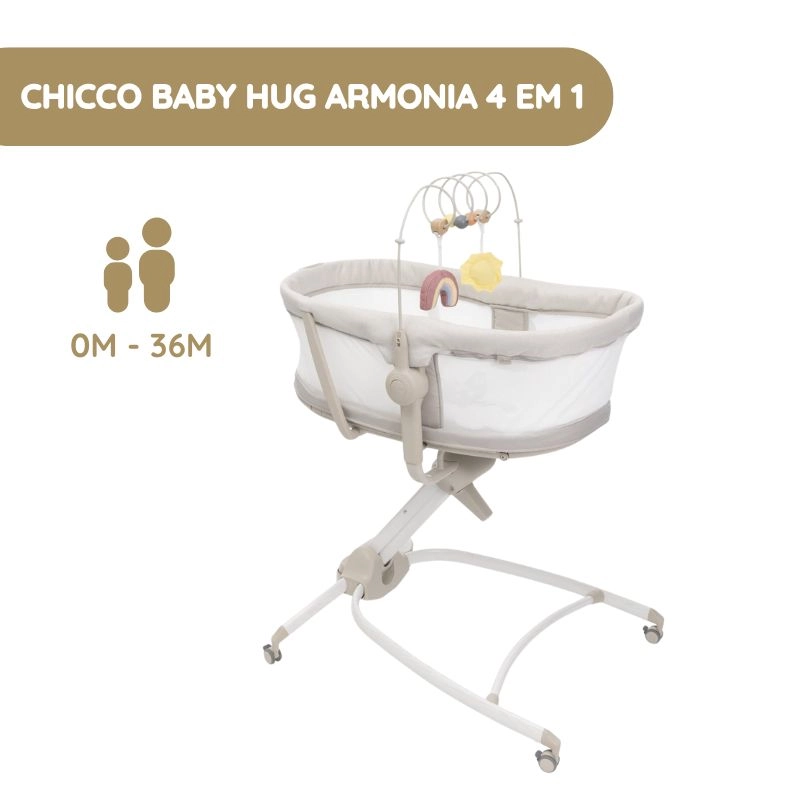 O Chicco Baby Hug Armonia 4 em 1 destaca-se por ser um verdadeiro berço multifuncional, capaz de acompanhar o bebé desde o nascimento até aos primeiros anos de autonomia.