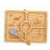 Este prato em Bambu vai tornas as refeições dos seus pequenos mais divertidas. O bambu é antibacteriano e livre de toxinas e é ecológico. Com várias divisórias pode repartir os alimentos pelas mesmas e deixar o seu filho comer livremente promovendo a alimentação independente (BLW). Inclui uma colher com cabo em bambu e ponta em silicone.