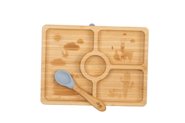 Este prato em Bambu vai tornas as refeições dos seus pequenos mais divertidas. O bambu é antibacteriano e livre de toxinas e é ecológico. Com várias divisórias pode repartir os alimentos pelas mesmas e deixar o seu filho comer livremente promovendo a alimentação independente (BLW). Inclui uma colher com cabo em bambu e ponta em silicone.