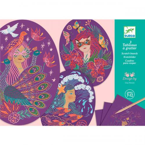 As ilustrações são gradualmente reveladas e a magia acontece! Ajuda a aprender a criar padrões. Inclui: 3 cartões (22 x 29 cm), 1 caneta de madeira com ponta dupla, 1 livreto explicativo passo a passo em cores.