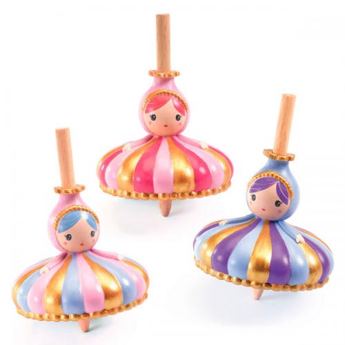 É o presente de aniversário perfeito. Pião com corpo de plástico moldado, com haste de madeira. Efeito dourado. 3 cores diferentes. 5 x 7 cm.