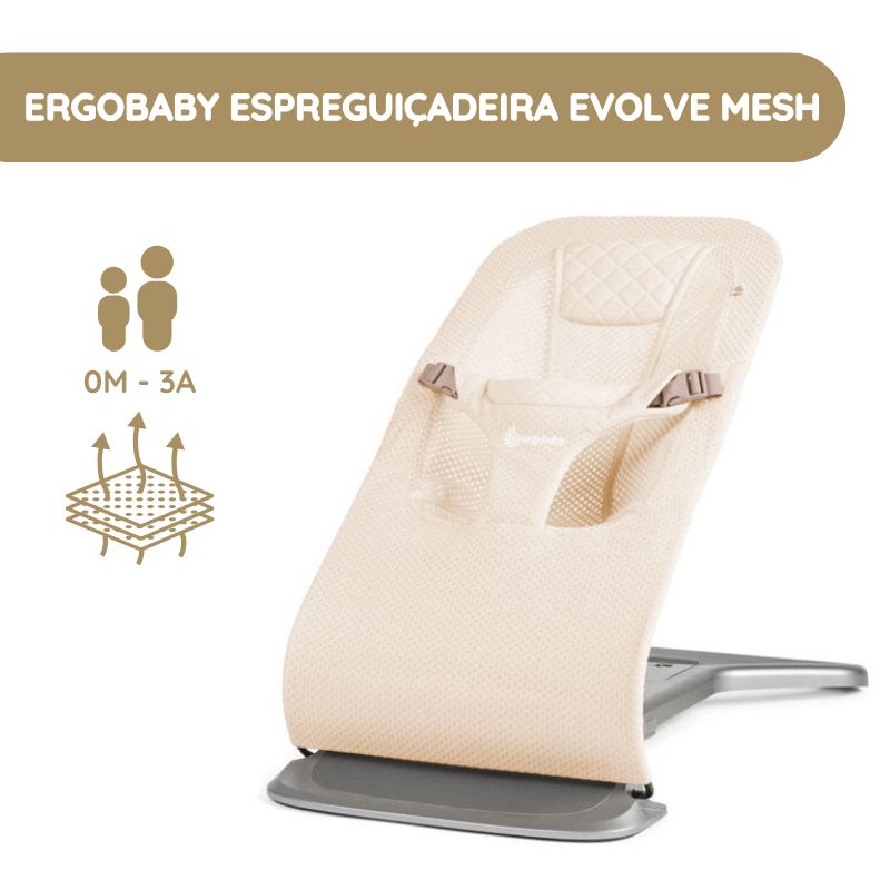 A Espreguiçadeira Evolve Mesh da Ergobaby foi pensada para ser o lugar preferido do seu bebé, desde o nascimento até cerca dos 3 anos. Com um design ergonómico e seguro, esta espreguiçadeira acompanha o crescimento do seu filho, oferecendo diferentes níveis de inclinação para cada fase do desenvolvimento.