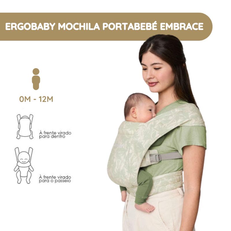 Ergobaby Mochila Portabebé Embrace – leve, compacta e ideal para recém-nascidos. Fácil de usar, promove o vínculo e mantém o bebé confortável e seguro.