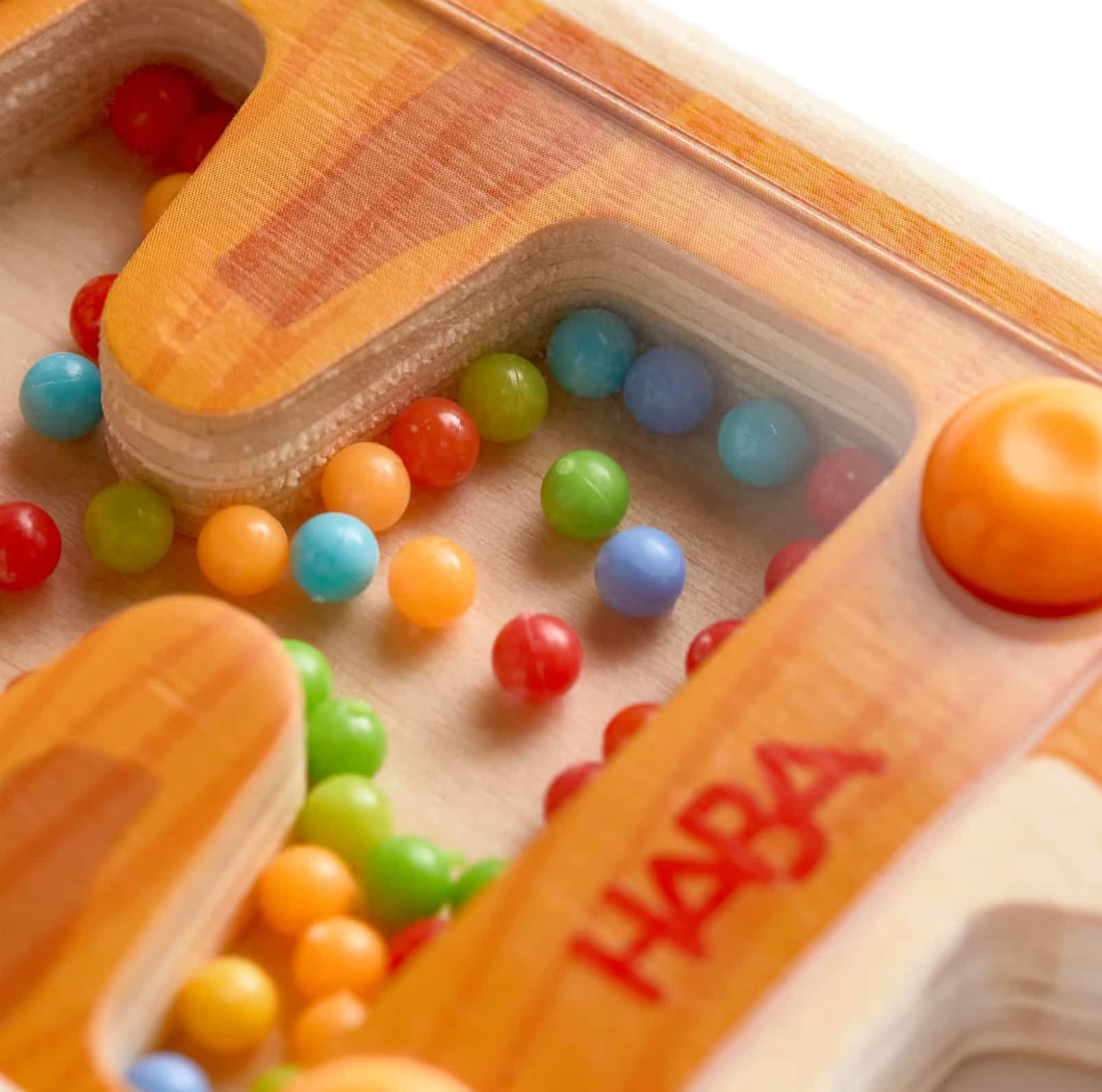 As crianças podem experimentar o ângulo de inclinação, influenciando o quão alto e rápido as bolas se movem. Absolutamente cativante para horas de diversão!