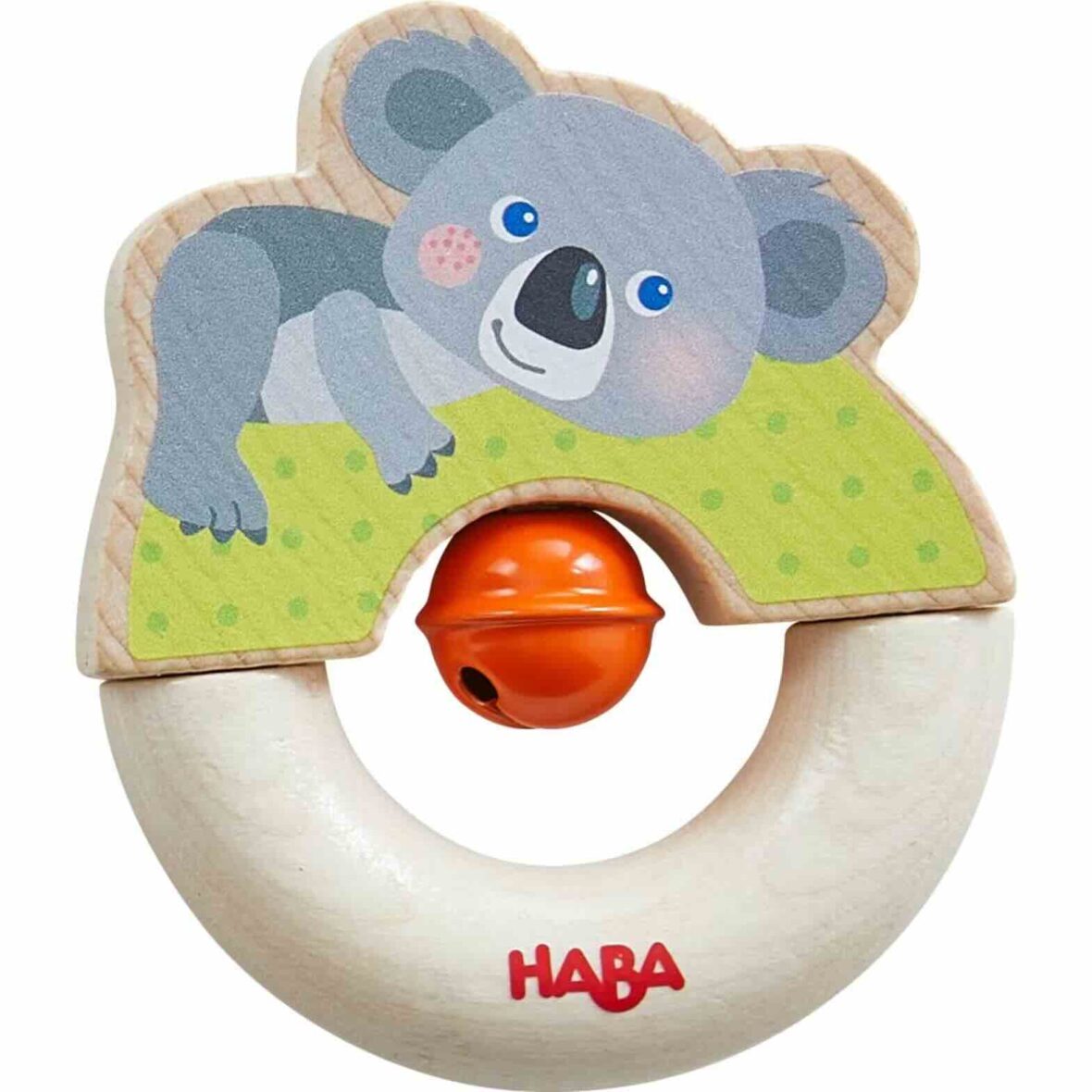 O lindo coala vem com um sino laranja que toca alegremente quando o bebé mexe no brinquedo de madeira. O brinquedo de agarrar, com um design mágico, faz parte da diversificada série Coala da HABA. Com o seu toque agradável e as suas belas cores, o bonito brinquedo para bebé convida-o a pegar nele e a experimentá-lo. Mesmo deitados de barriga para baixo, os bebés a partir dos 6 meses gostam de descobrir o som suave da campainha.
