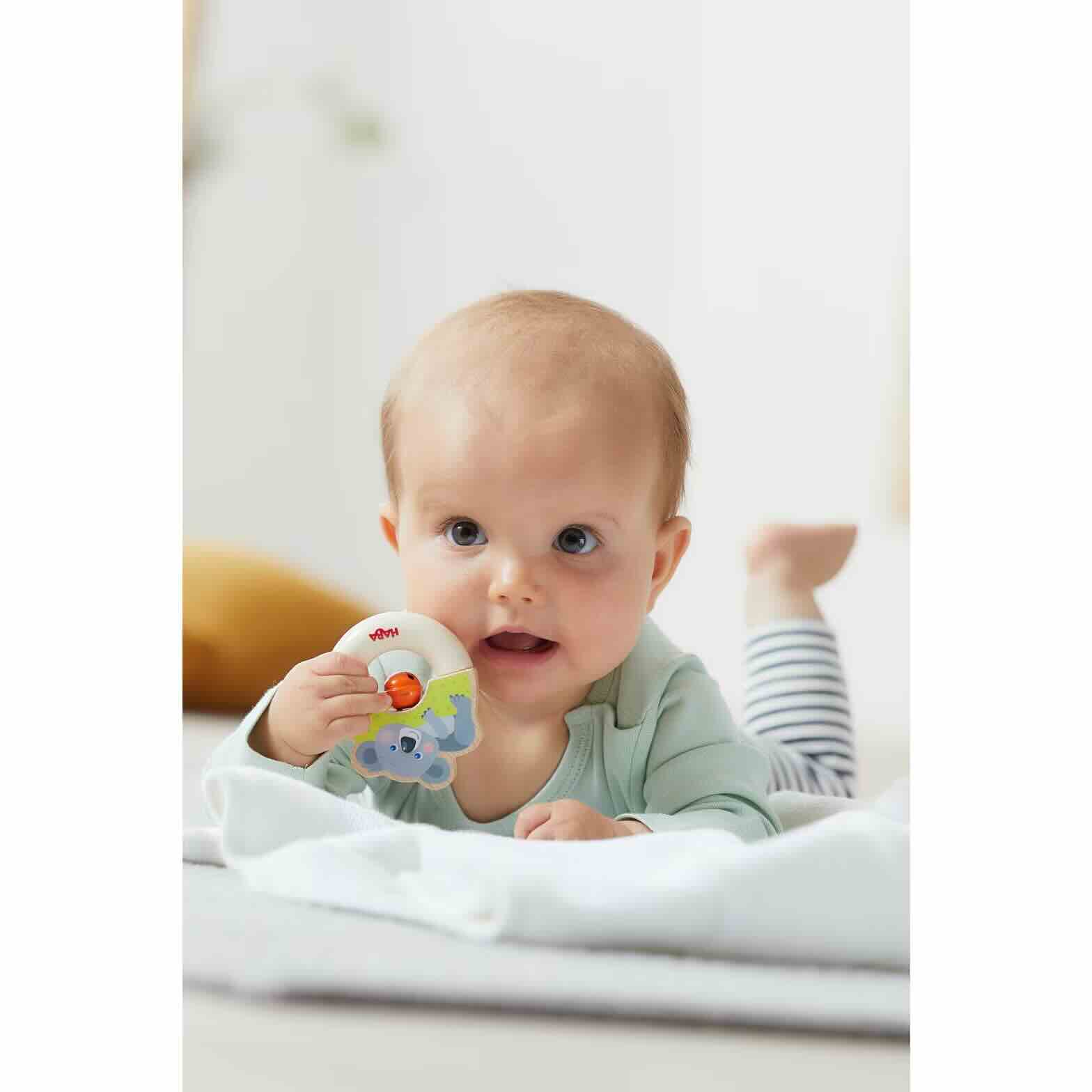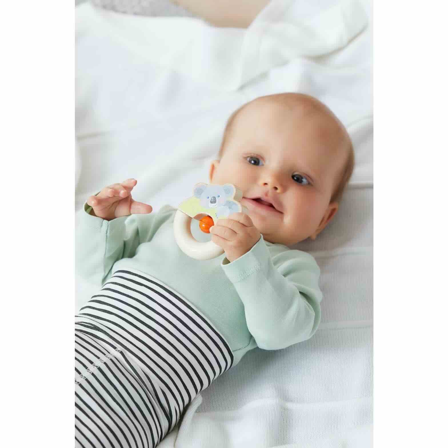 O brinquedo de agarrar em madeira promove de forma divertida as capacidades motoras finas e a perceção. O bebé e o coala estão a rir tanto! O prático brinquedo emocionante mantém-no de bom humor, mesmo quando está em movimento.