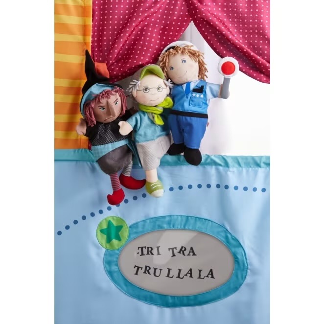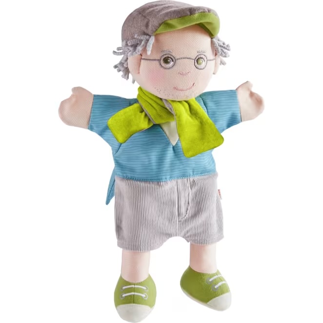 Quando o avô Peter é enviado para o palco do teatro de fantoches com um macacão e chinelos fofos, as gargalhadas são garantidas. Fiéis ao lema “Põe a mão, sê ator”, crianças ou adultos podem facilmente recriar peças pequenas e imaginativas com o fantoche HABA, e ser encorajados a brincar gratuitamente.