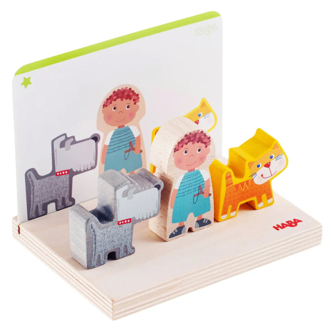 A base de madeira resistente suporta todos os tipos de diversão de empilhamento. As crianças podem combinar os modelos, que variam em dificuldade, ou criar os seus próprios arranjos criativos.