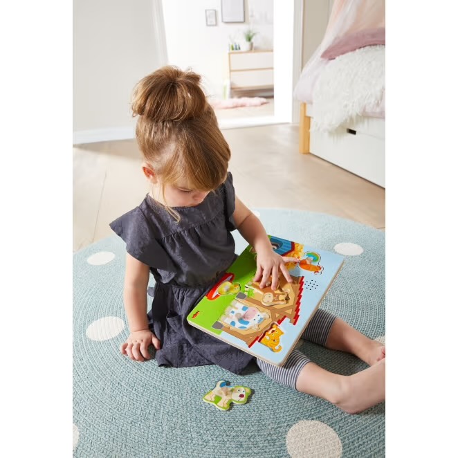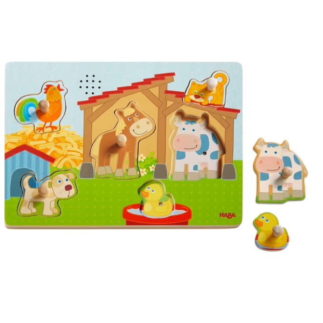 Com os excitantes puzzles de som HABA, as crianças podem não só ver o sucesso do puzzle, como também ouvi-lo: se uma das 6 peças de madeira, com botões grandes e fáceis de manusear, for encaixada corretamente, o som correspondente será ouvido.
