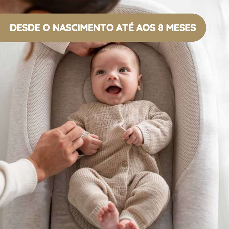 Ambiente Seguro e Confortável: O design ergonómico facilita uma posição confortável, promovendo o alinhamento adequado da coluna vertebral do bebé.