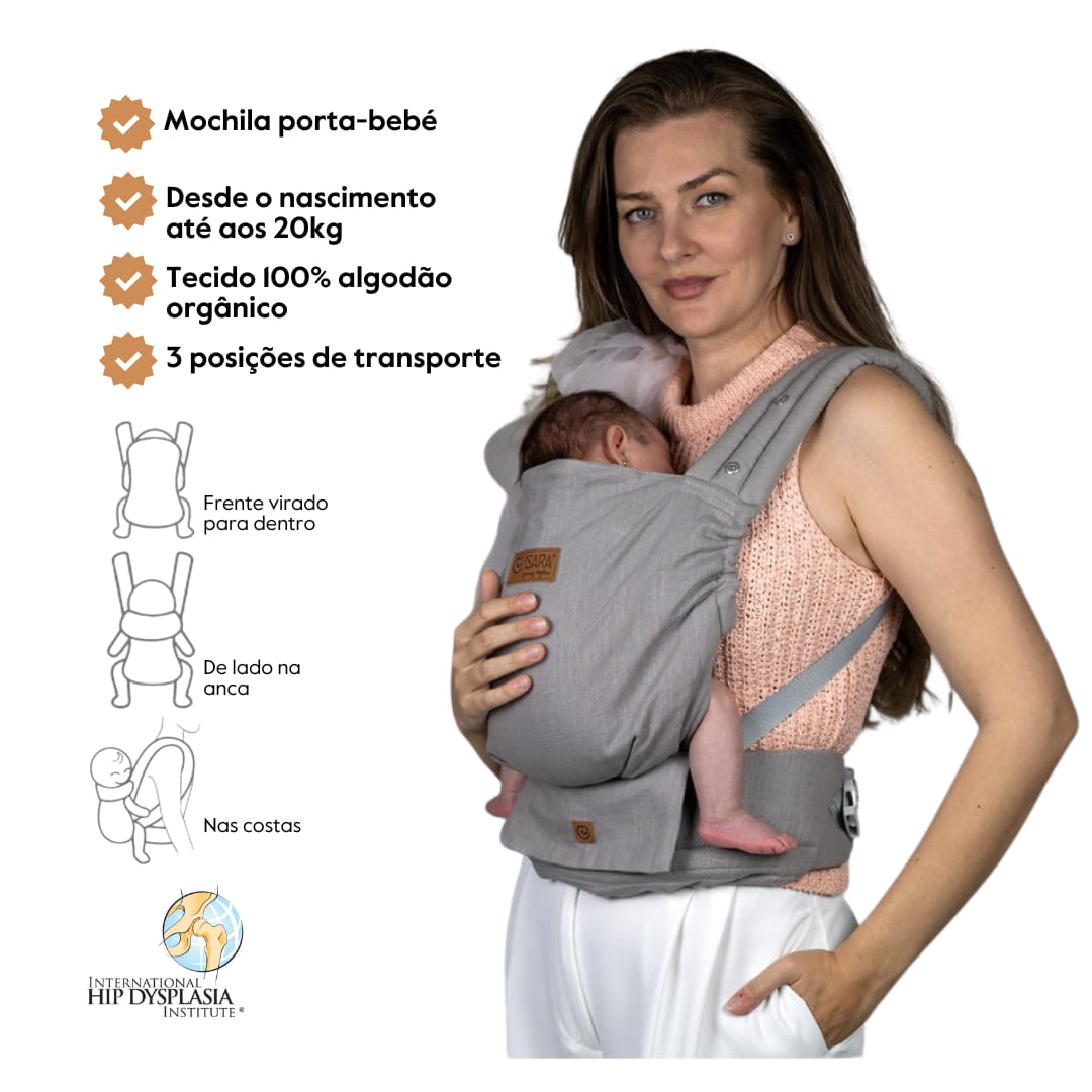 ✅ 3 posições de transporte: Frente para dentro, de lado (quadril) e nas costas