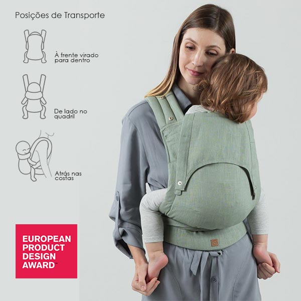 • 3 posições de transporte: Frente para dentro, de lado (quadril) e nas costas.