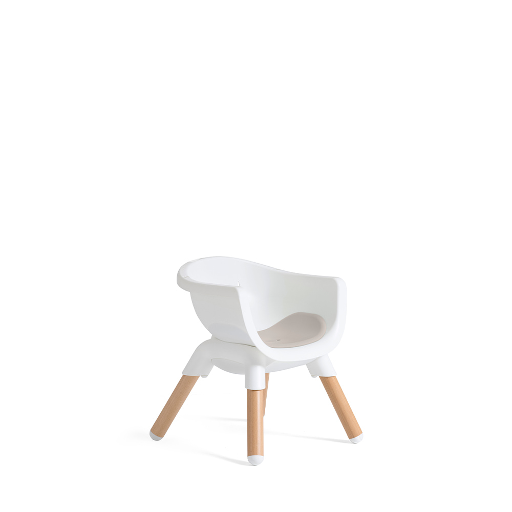 Graças às 3 posições de altura ajustáveis, esta cadeira pode ser colocada à altura de uma mesa de jantar ou de uma bancada de cozinha, permitindo que a criança participe nas refeições em família ou observe enquanto prepara outros alimentos.