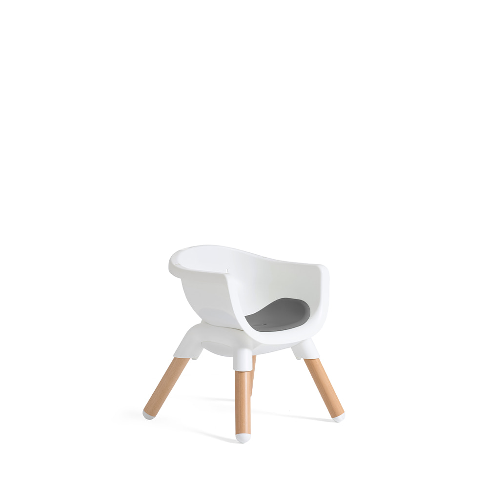 Graças às 3 posições de altura ajustáveis, esta cadeira pode ser colocada à altura de uma mesa de jantar ou de uma bancada de cozinha, permitindo que a criança participe nas refeições em família ou observe enquanto prepara outros alimentos.