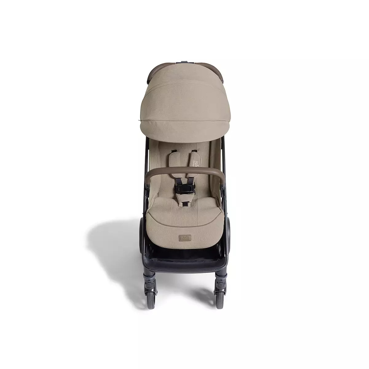 Rodas com suspensão suave, rodas dianteiras bloqueáveis e guarda‑chuva prático.