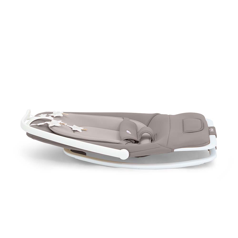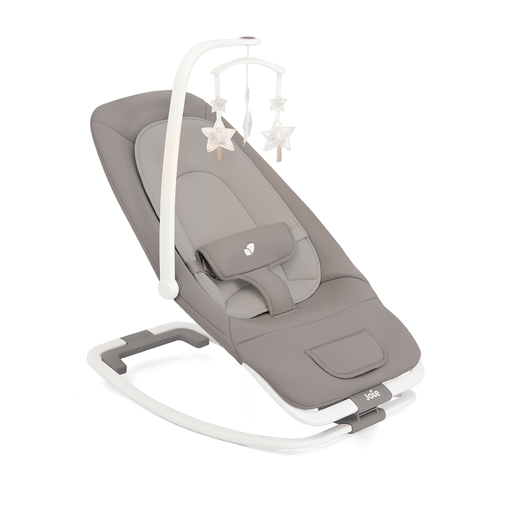 Joie Espreguiçadeira Dreamer: espreguiçadeira e baloiço versátil desde o nascimento até ~15 kg com vibrações suaves, sons calmantes, brinquedos interativos e fecho compacto. Conforto e entretenimento em casa ou em viagem.