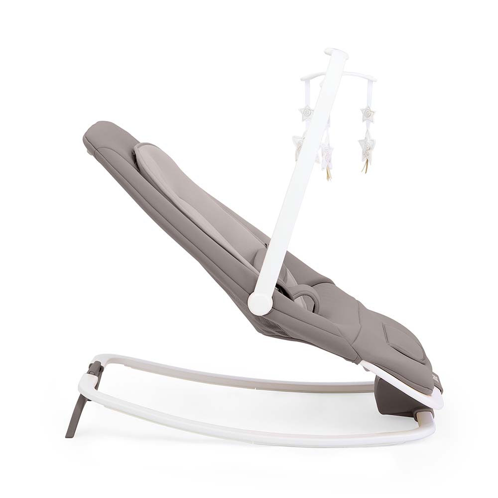 A presença de uma barra de brinquedos giratória e removível com peluches estimula a curiosidade e o desenvolvimento sensorial do bebé. O design com forro suave, removível e lavável torna a manutenção simples, enquanto o fecho ultra compacto facilita o armazenamento e transporte.