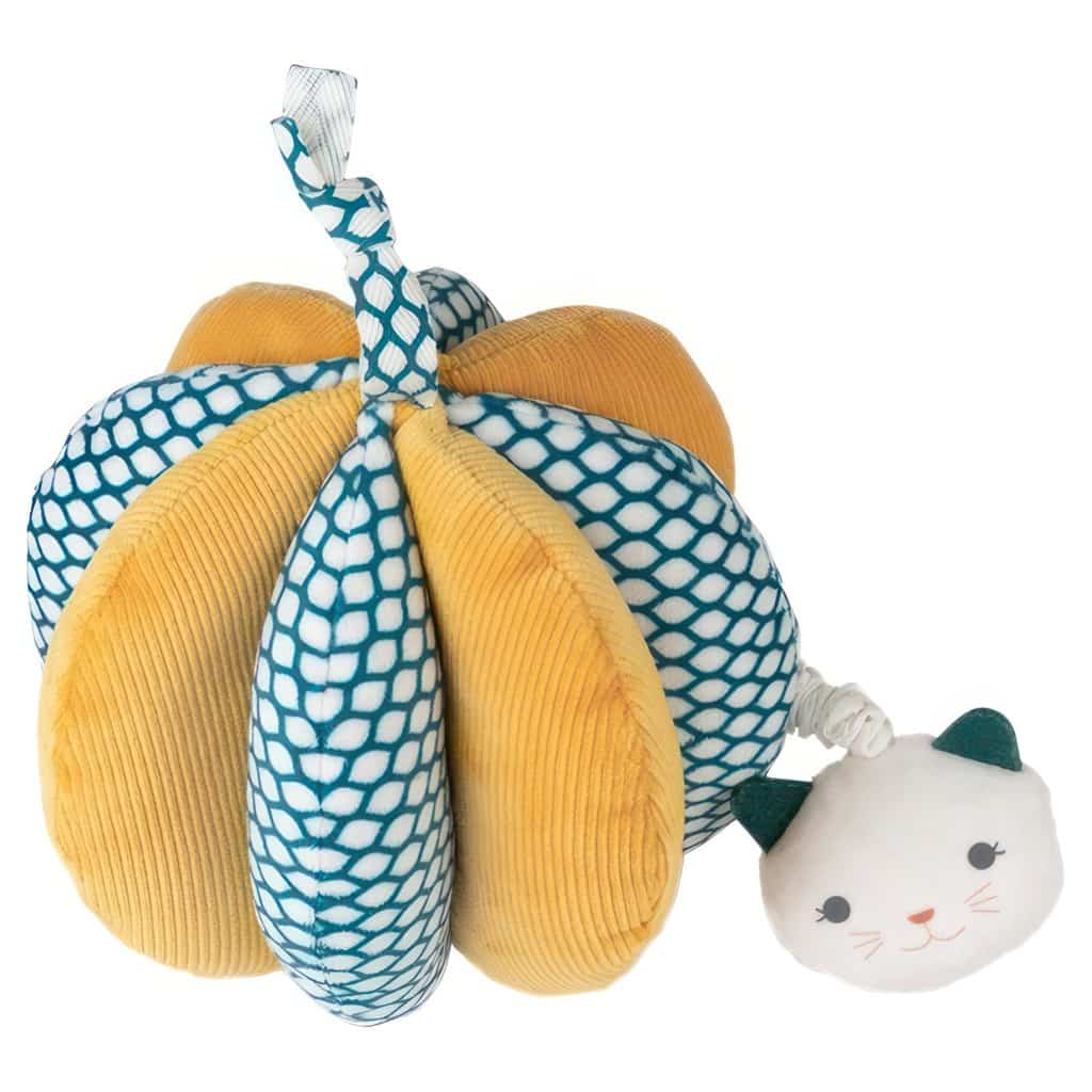 Concebida e produzida em colaboração com terapeutas ocupacionais, esta bola é ideal para desenvolver a motricidade fina do bebé. A bola de tecido macia e fofinha foi especialmente projetada para mãos pequenas e os seus painéis individuais em forma de pétala facilitam o seu agarrar. Estimulará imediatamente as habilidades motoras básicas do bebé e, à medida que o bebé crescer, a bola também o ajudará gradualmente a desenvolver habilidades motoras finas. Se puxar o gato fará a bola vibrar, proporcionando ao bebé uma nova experiência sensorial.