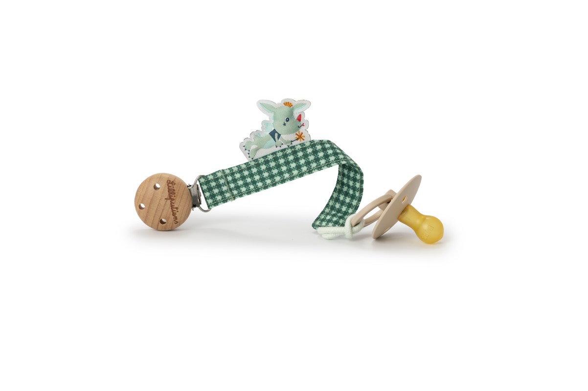Fita para chupeta que a mantém ao alcance do seu filho sem risco de se perder. Feito de algodão orgânico e madeira certificada FSC.