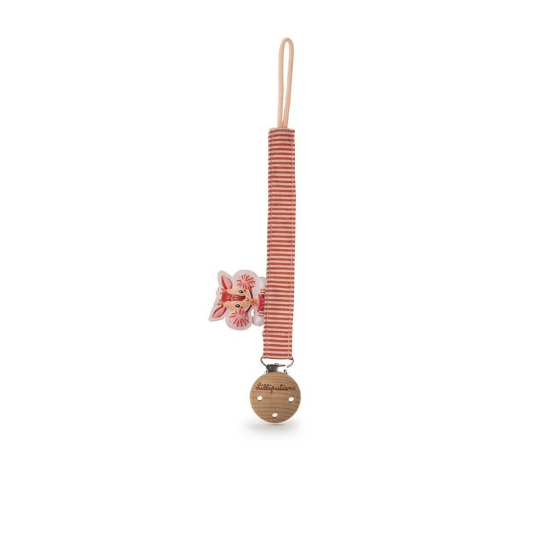 Fita para chupeta que a mantém ao alcance do seu filho sem risco de se perder. Feito de algodão orgânico e madeira certificada FSC.