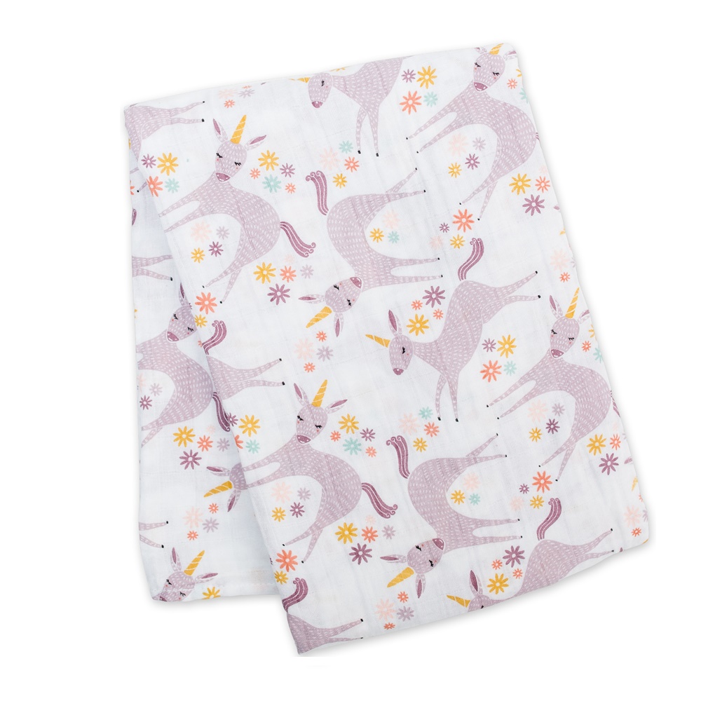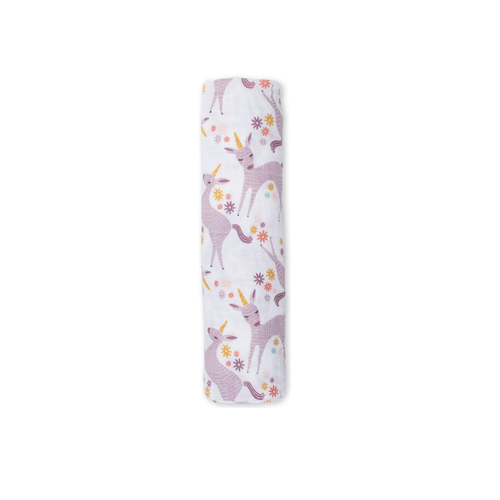 Lulujo – Musselina de Algodão 120x120cm – Unicórnios
