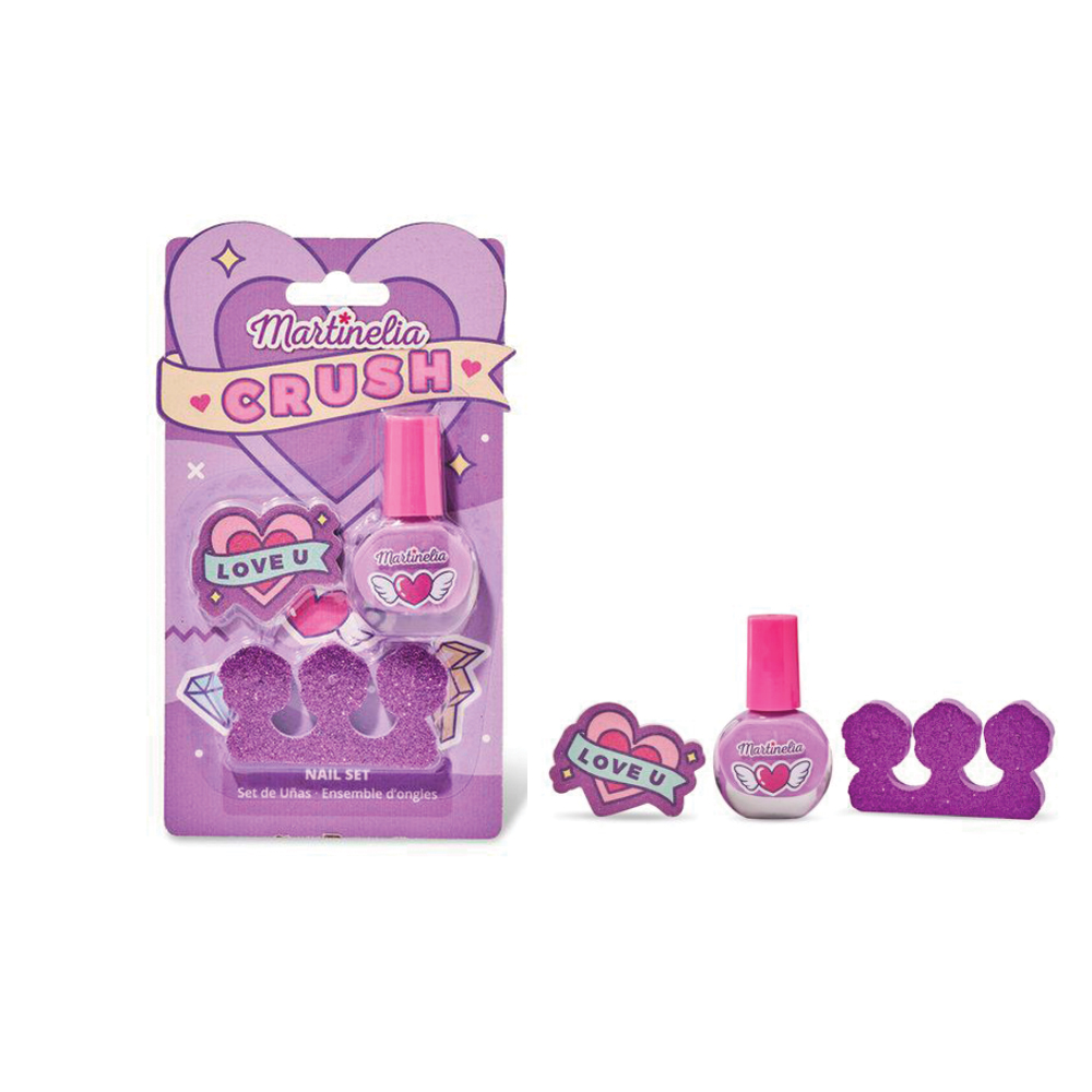 Este conjunto contém tudo o que é necessário para uma manicure e pedicure perfeita em casa! Inclui 1 verniz de unhas, 1 lima em forma de coração e 1 separador de purpurina para pedicure.