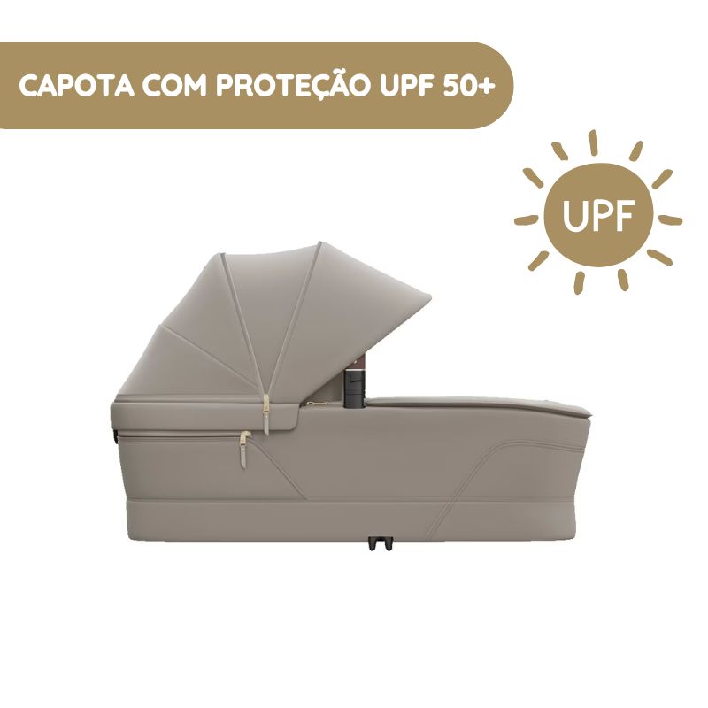 - Capota extensível com proteção solar UPF 50+ e janela de ventilação