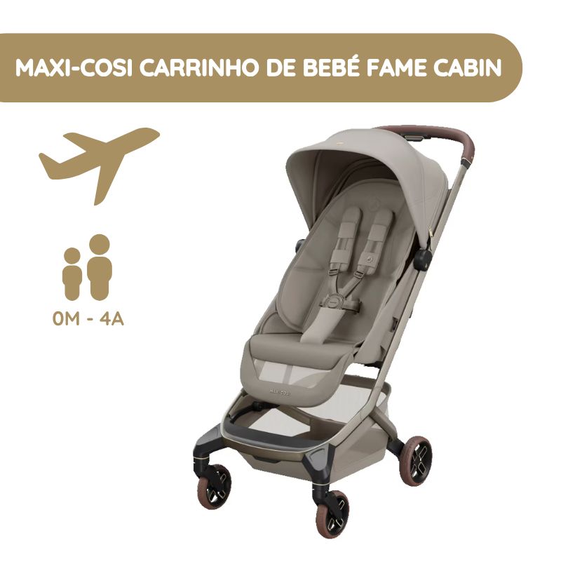 O Carrinho de Bebé Fame Cabin da Maxi-Cosi foi concebido para famílias que adoram viajar e procuram praticidade sem abdicar do conforto. Com design leve, compacto e elegante, é aprovado pela IATA para caber na cabine do avião, sendo perfeito para viagens aéreas, de comboio ou de carro.
