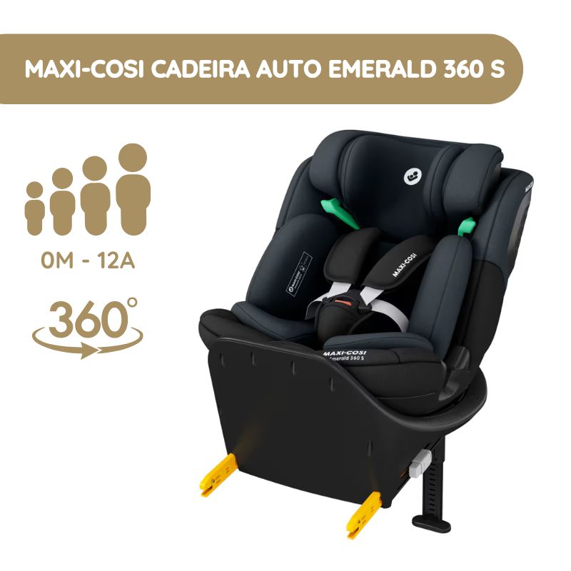 A Maxi-Cosi Cadeira Auto Emerald 360 S foi desenvolvida para acompanhar todas as fases do crescimento: