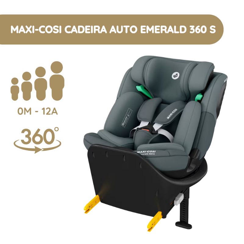 A Maxi-Cosi Cadeira Auto Emerald 360 S foi desenvolvida para acompanhar todas as fases do crescimento: