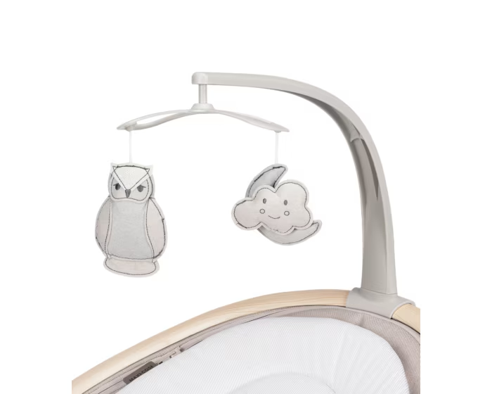 Tem 5 movimentos exclusivos que podem ser controlados através do seu telemóvel e ainda tem a possibilidade de colocar a playlist preferida do seu bebé a tocar.