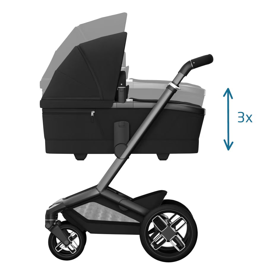 - Adapta-se à altura dos pais para maior ergonomia ao colocar e retirar o bebé.
