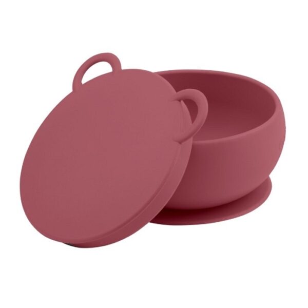 Esta prática taça em silicone tem uma tampa para armazenar as comidas dos mais pequenos.