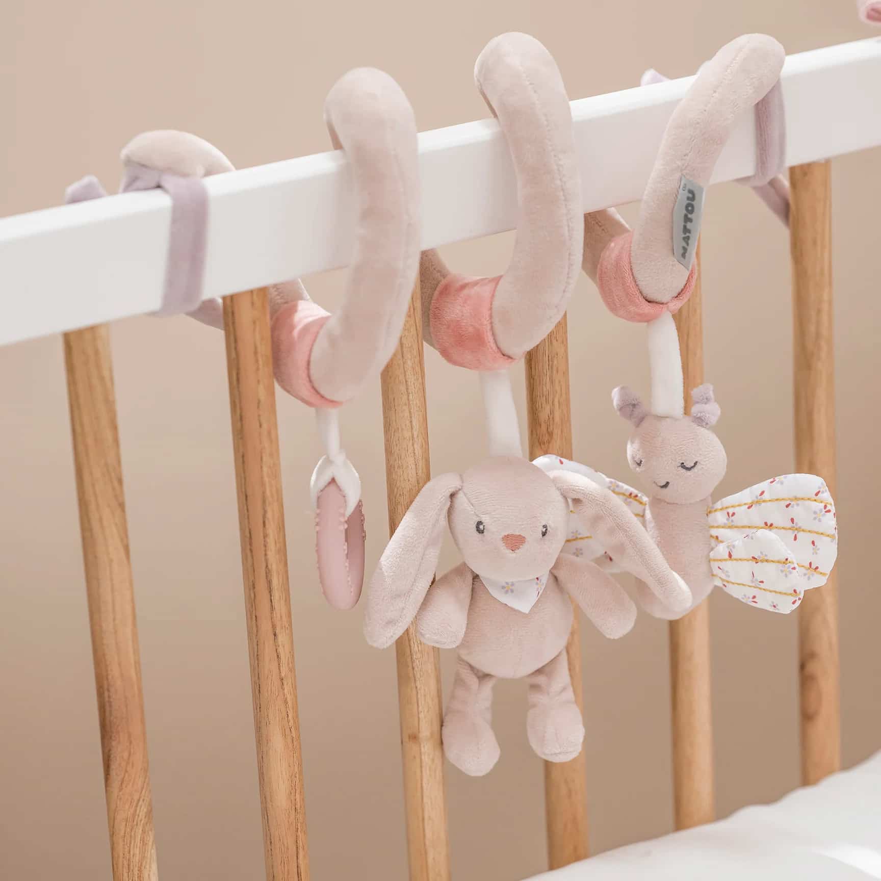 - Brinquedo espiral macio, pode ser fixada de forma rápida e flexível ao berço, parque, cadeira auto ou carrinho de bebé