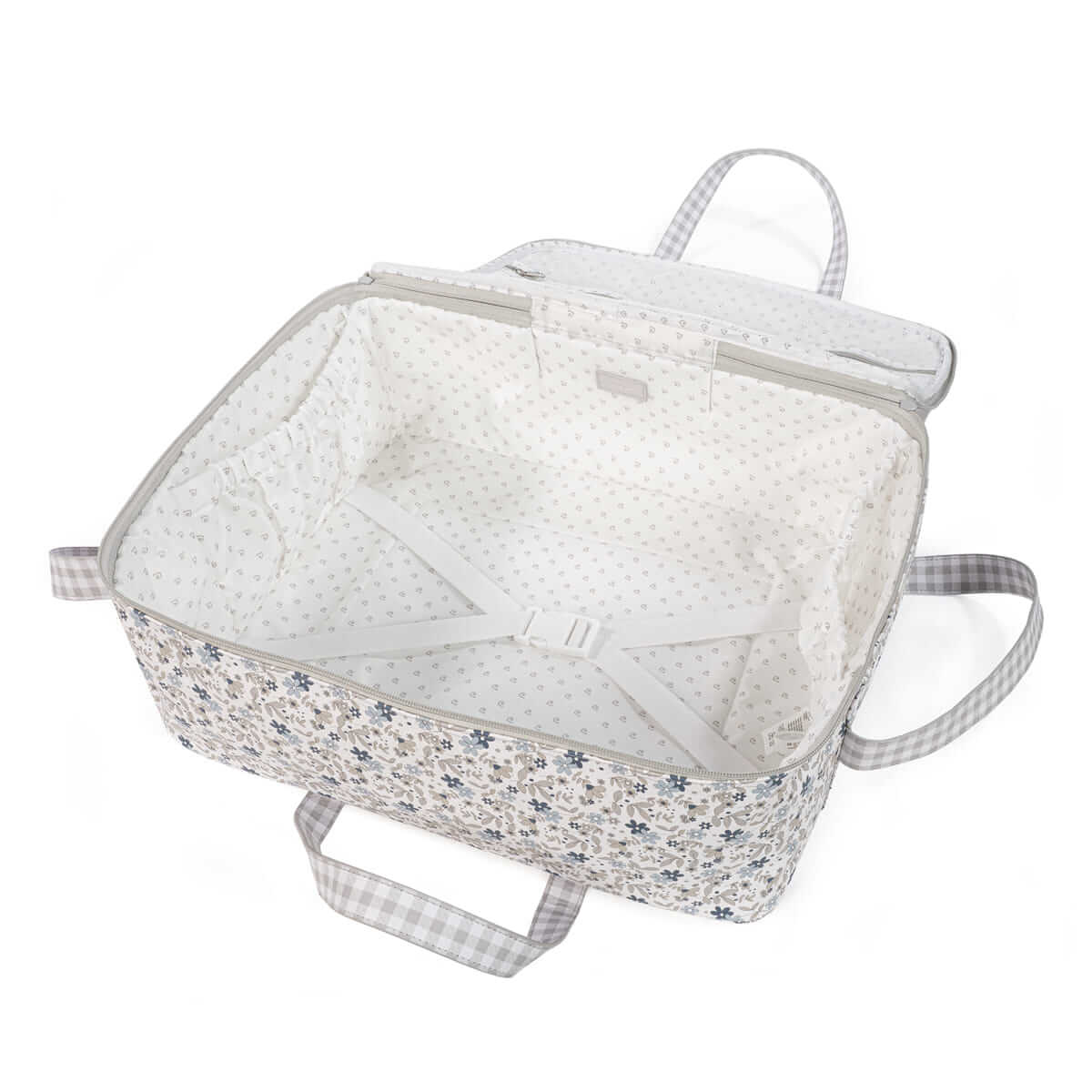 A Mala de Maternidade Delia é a mala perfeita para levar consigo para o hospital, especialmente pensado para que possa levar tudo o que precisa para si, para o pai e para o bebé. É feita em couro sintético macio e resistente com padrão de flores. Com um design simples, moderno e prático que oferece grande capacidade para transportar muitas coisas e possui uma abertura prática para facilmente encontrar o que precisa. Vem equipada com uma alça longa para pendurar no ombro e duas alças pequenas para carregar na mão se preferir. Possui um forro interno com elásticos para segurar o conteúdo e fecha com segurança por fechos bilateral. Também pode ser lavado à mão ou à máquina em temperatura até 30º.