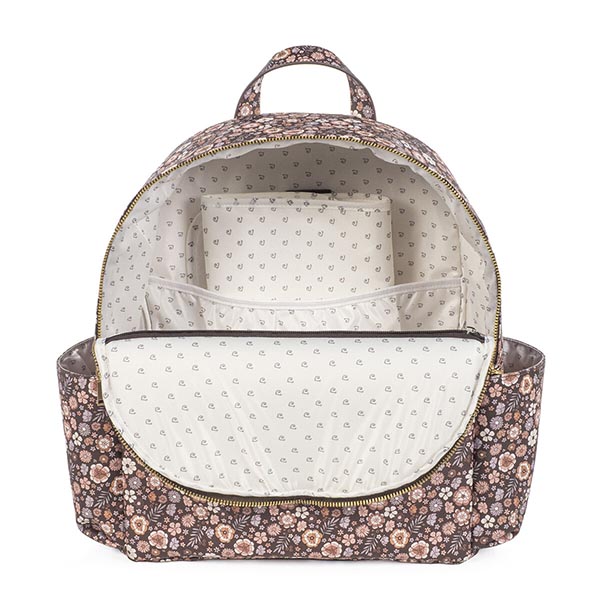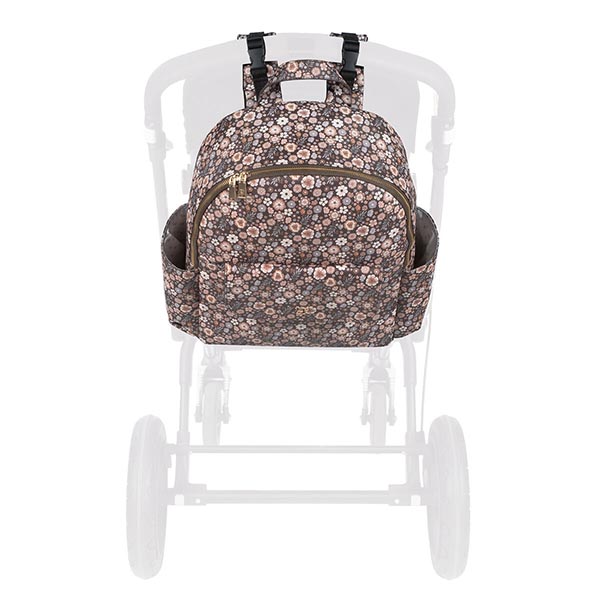 A Mochila Blossom Petal é feita em couro sintético com um padrão de flores. Com grande capacidade para transportar tudo o que os pais e o bebé precisam. Dispõe de bolsos internos e externos para manter tudo à mão e organizado. No interior tem um compartimento para um portátil ou tablet. As alças são grandes e ajustáveis e ainda tem outras duas alças pequenas para que possa usá-la pendurado no carrinho de bebé.