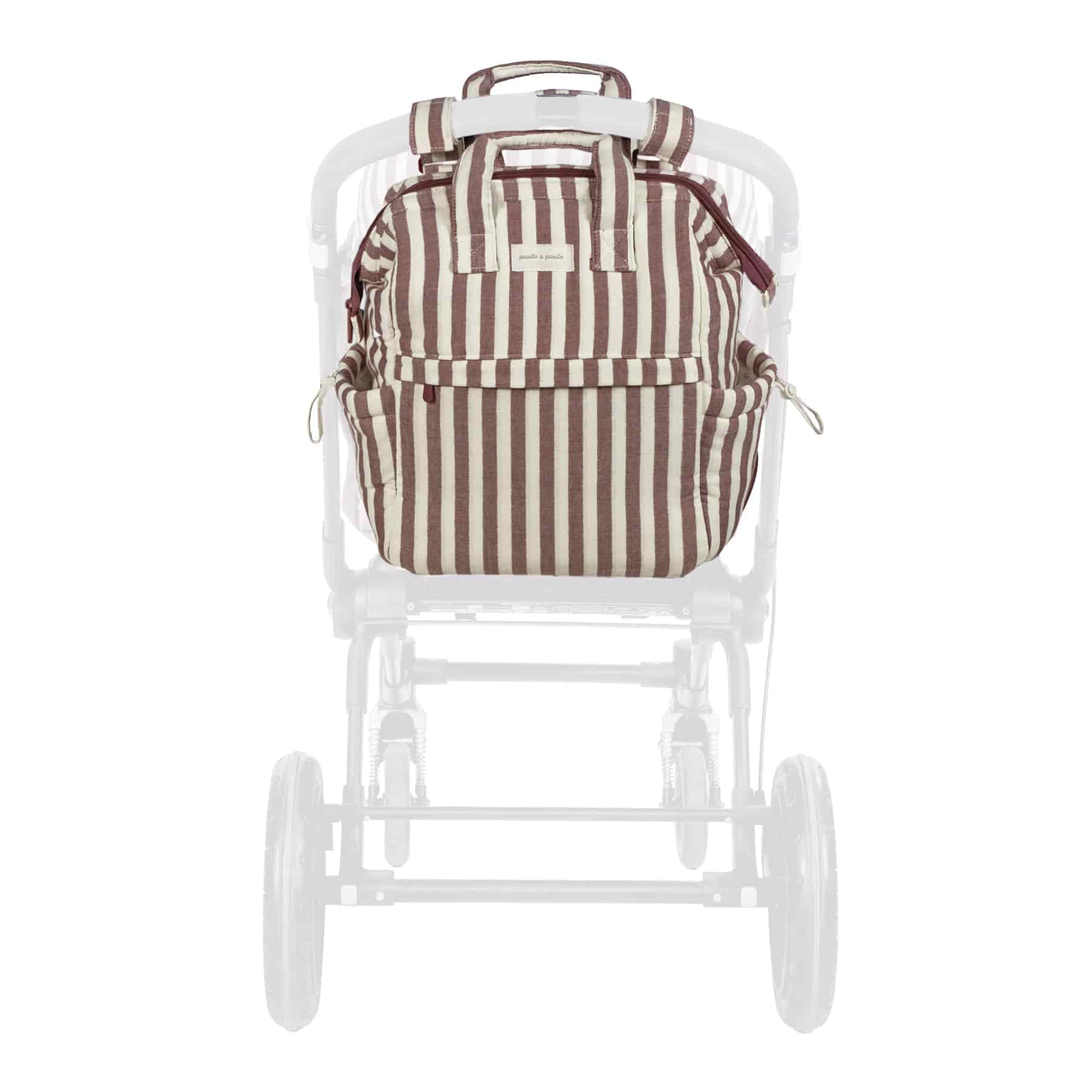 Pasito a Pasito Mochila Cherry: espaçosa, resistente à água e com múltiplos bolsos organizadores. Inclui muda-fraldas portátil e várias opções de transporte. Perfeita para o dia a dia dos pais.