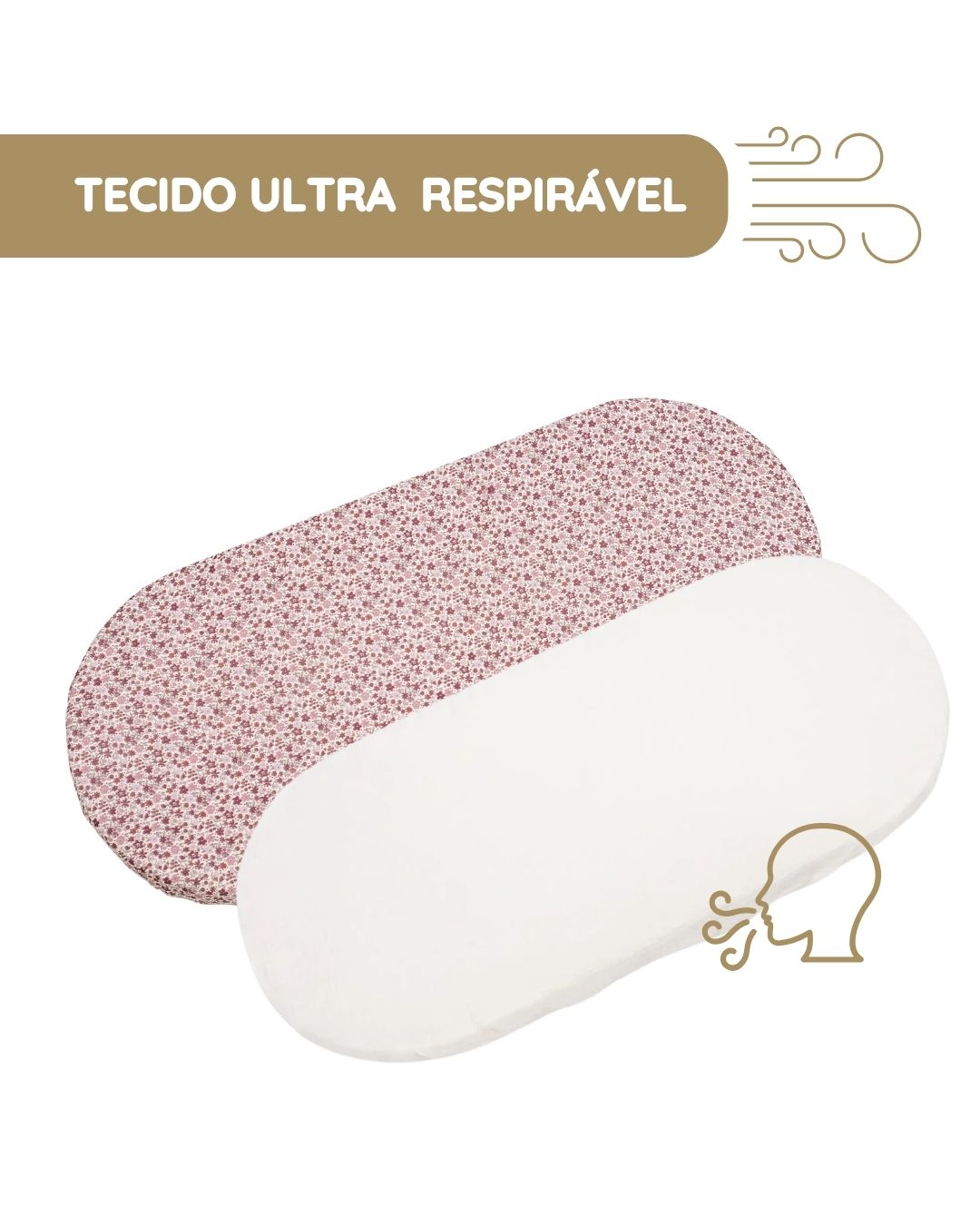 A Pasito a Pasito Pack 2 Lençóis Ajustáveis para alcofa Cherry Flor oferece:
