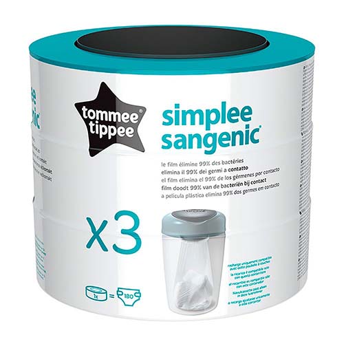 Estas recargas apenas são compatíveis com os contentores Simplee Sangenic, que estão disponíveis em três cores, para que escolha o que melhor combine com o quarto do bebé. Cada contentor inclui uma recarga.